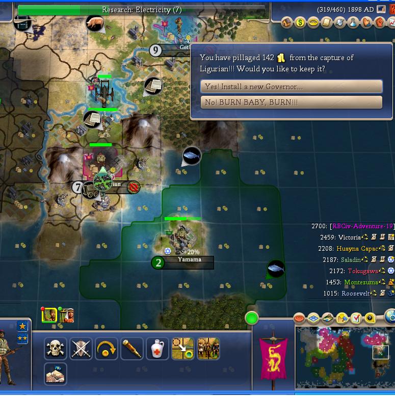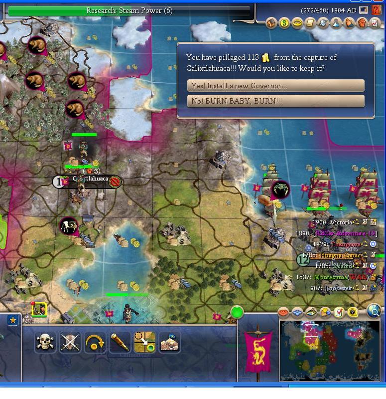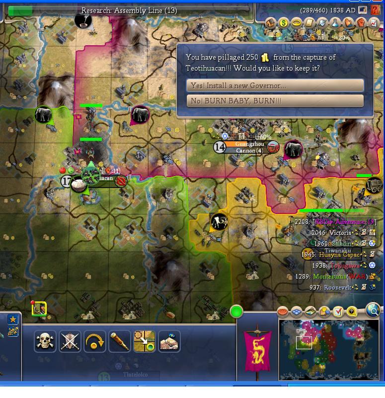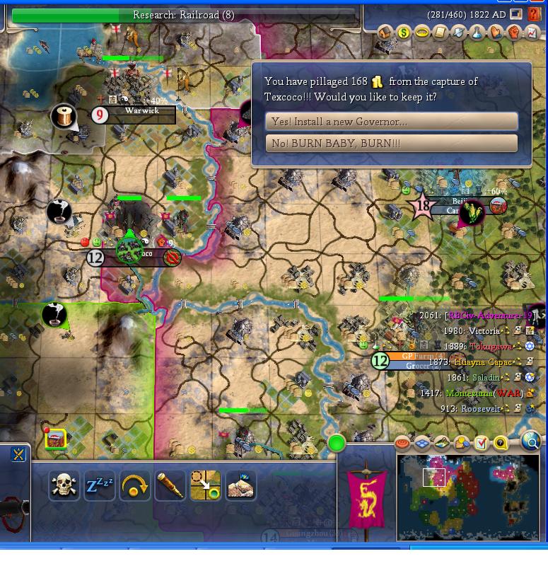 I destroy that annoying city in the north. Another bonus is I can get the GE up there to rush Wall Street. I finished my 6th bank just after Monty declared war.