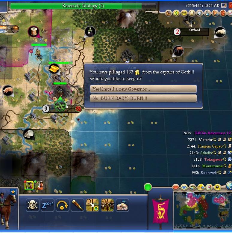 I turn back to smacking down Monty, and gain another happy resource. If you can build enough cannons, no AI city will hold. After taking the city, I use my first GA for a culture bomb. I t is quite annoying when England gets control of most of the tiles despite them being just 20% English.