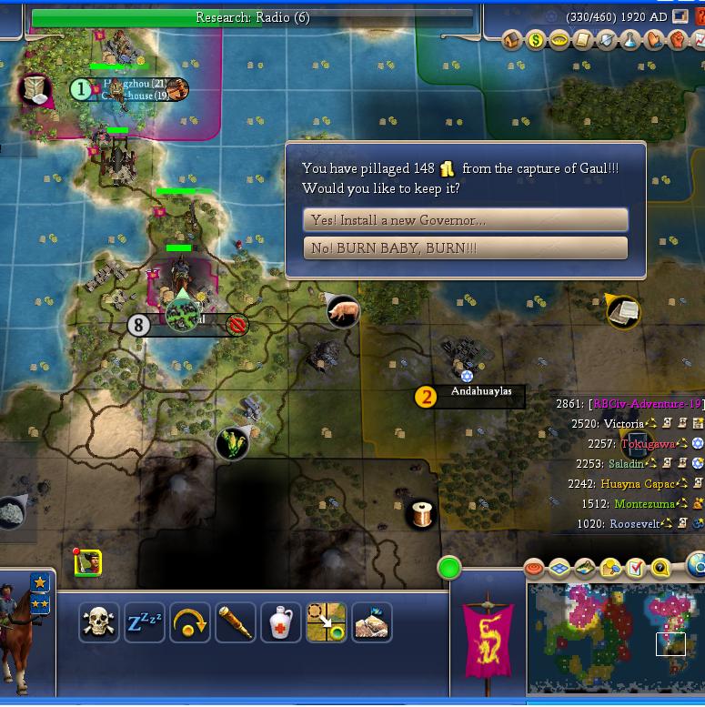 During the Monty war I built my first settler in the new world, and the expansion continues.