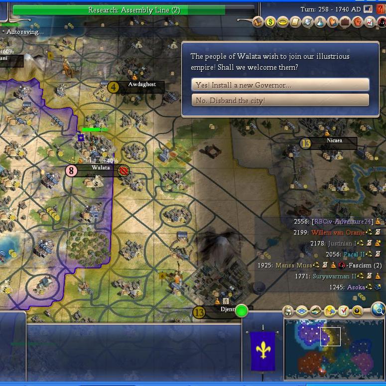 I now use the great artist to help solidify cultural control of Walata. I want the matured towns on the other side under my control.