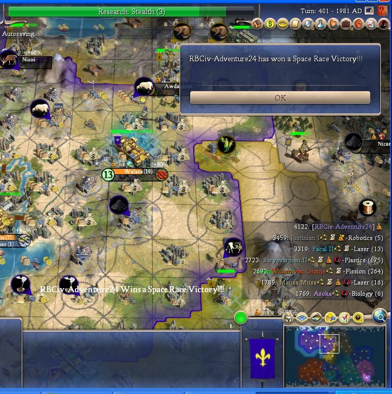 I swear Mansa couldn't care about wonders. Despite him getting communism before me I complete The Kremlin in 1715 AD. I get a bonus this turn, when I finally get a revolt in Walata.