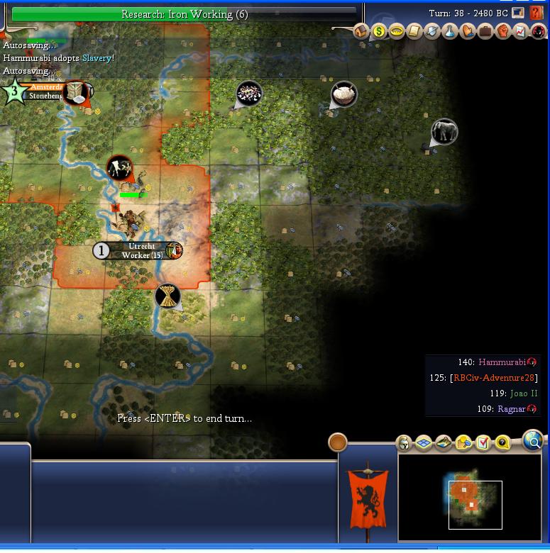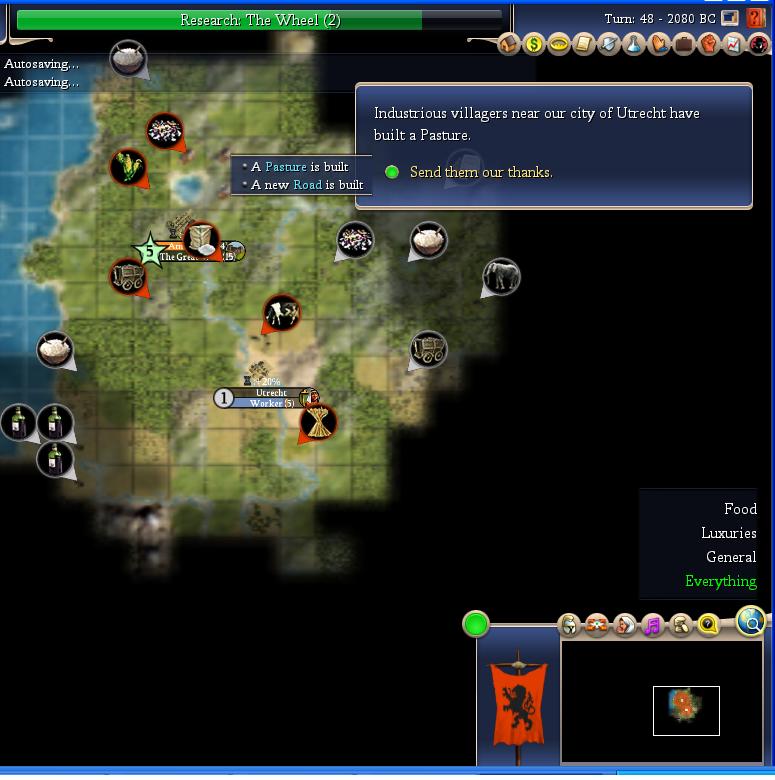 I completed the Great Wall in 1640 BC. It quickly earns it money when a random barbarian uprising event is deflected toward an AI (Joao?).