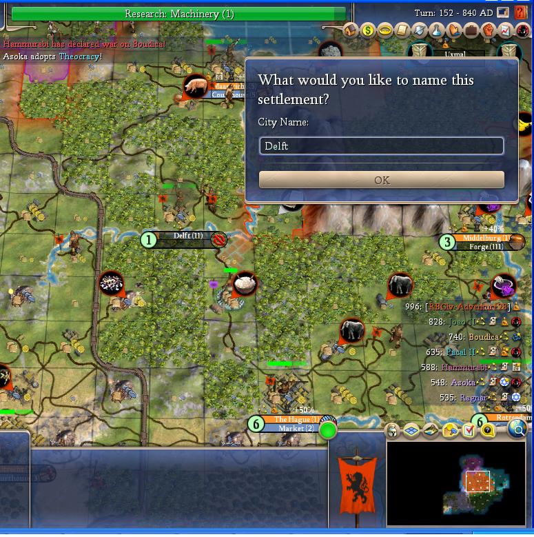 I add another city to the empire. The economy is decent, and I pre-mined the gems so that the city will pay for itself quickly.