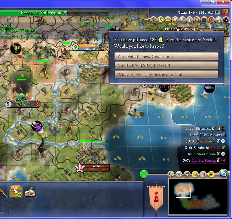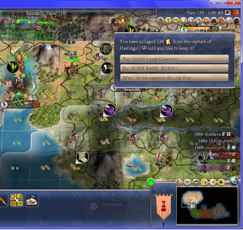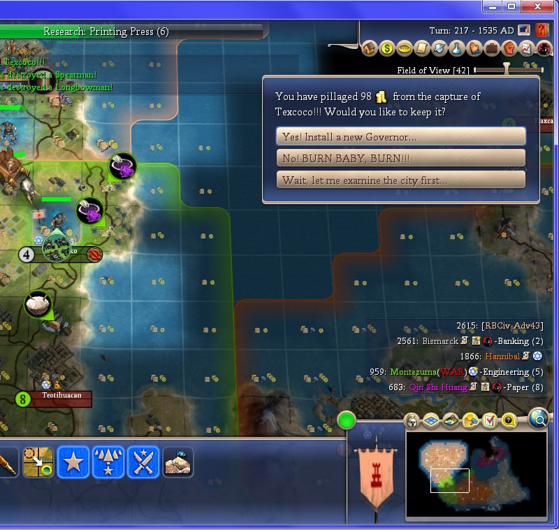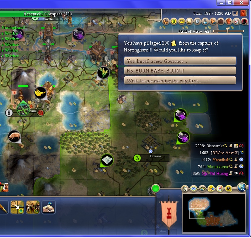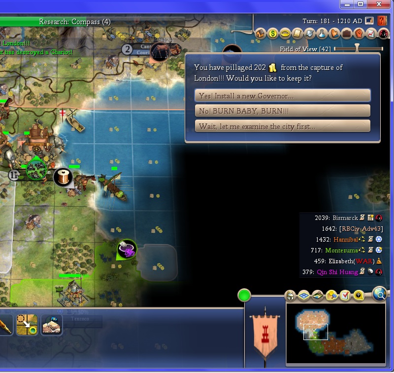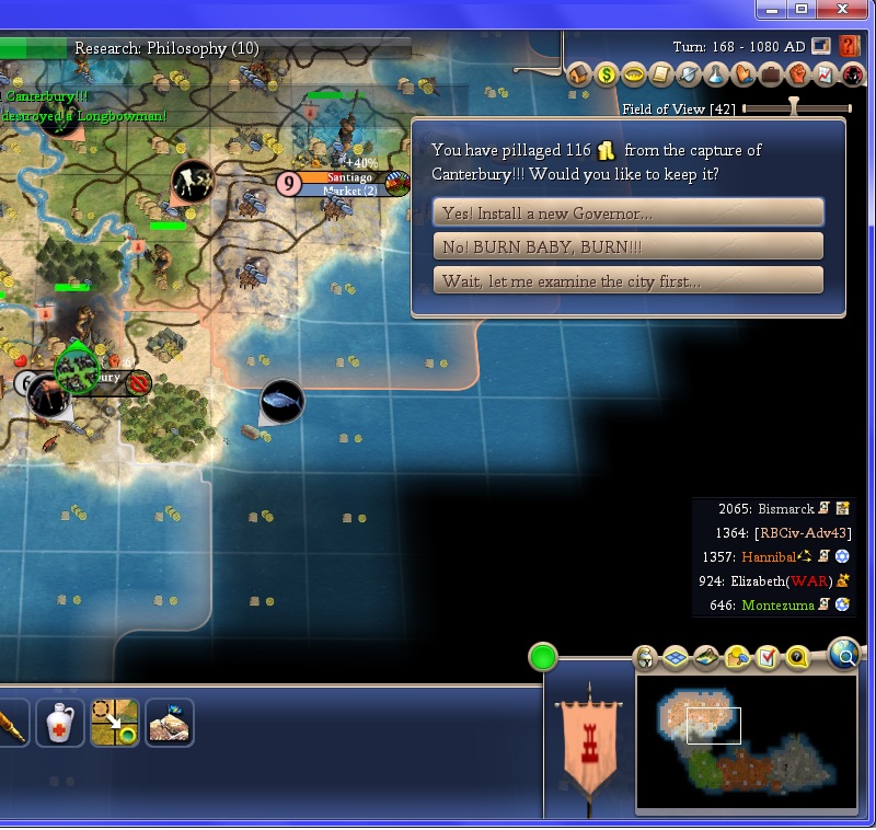 I send Monty a thank you card for weakening the city enough so that I could take it without loss.