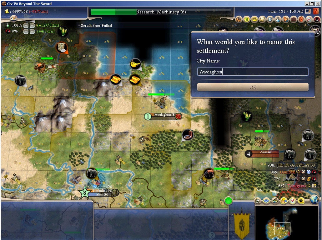 I have 40.47% of needed land, and I don't see enough tiles over in former Carthage to wrap it up.