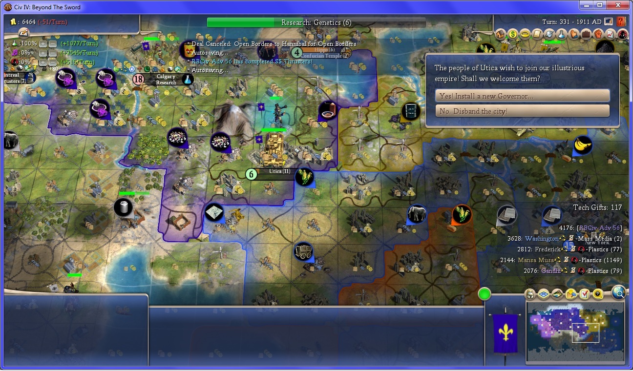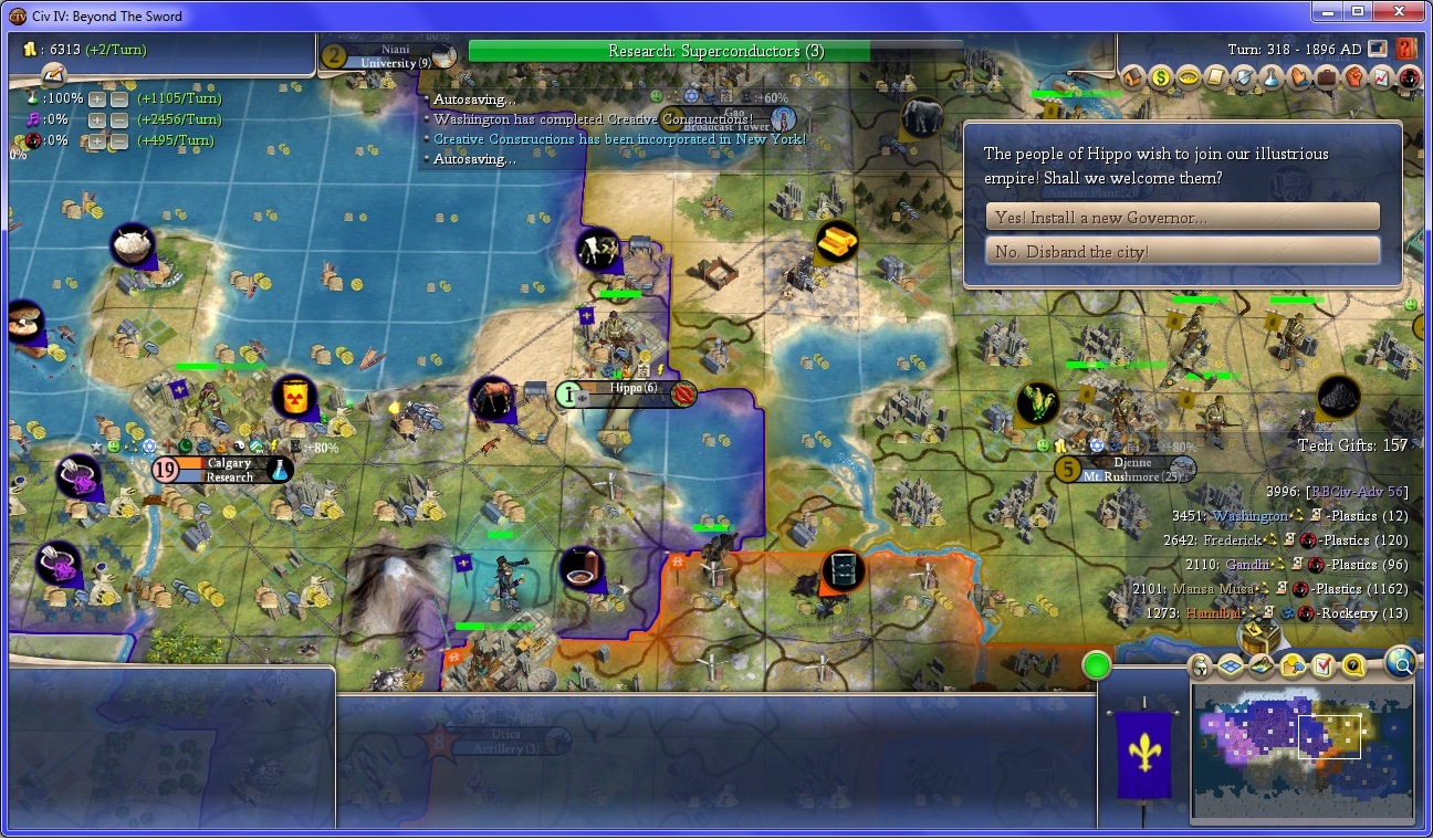 This won't be enough to make up the diplomatic deficit, but I gain a new city.
