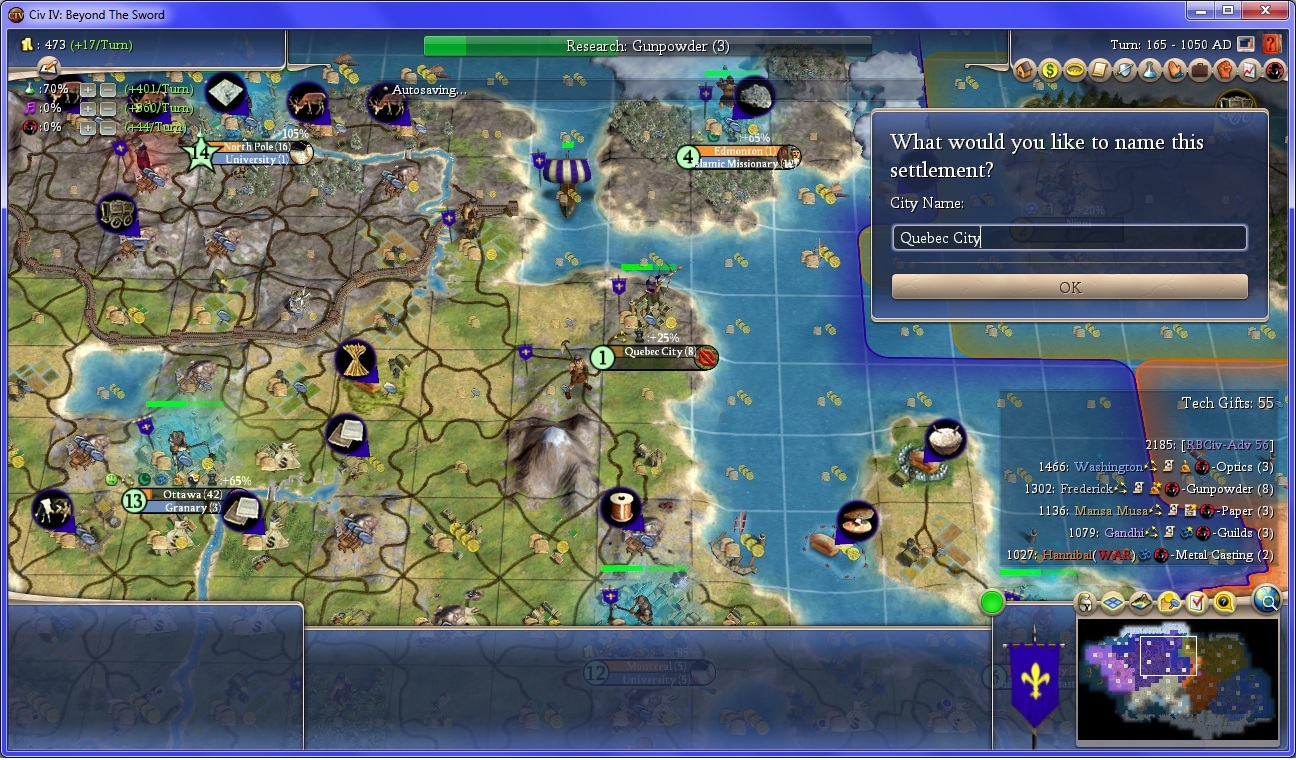 The Spiral Minaret is completed in 1010 AD. I am forced into war with Hannibal due to the AP.
