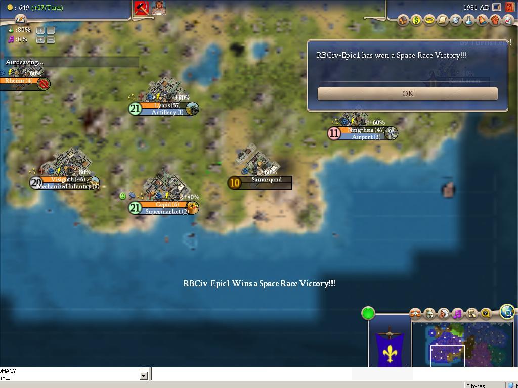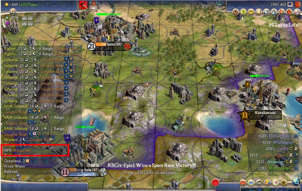 To give you an idea how bad the science situation is, I got a notice that America has completed the Apollo Program while I still have 3 turns to research rocketry.