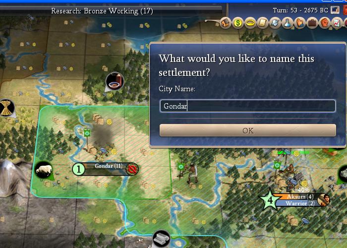 This city won't be great until CS when I get irrigation there, but I want to secure the second iron source.