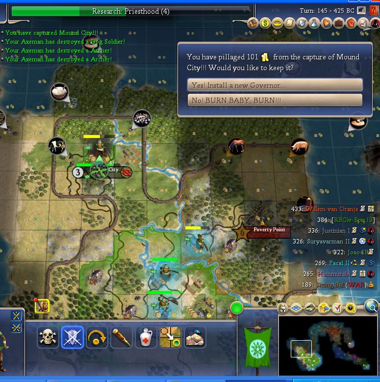 The losses were horrific, including most of my CR axes, but Sitting Bull is no more. 10 dead axes to take one town was obscene. At least I pick up a GG for my troubles.