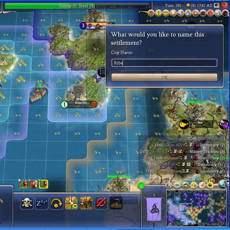 I grab a barbarian city with backup iron, and two fish resources.